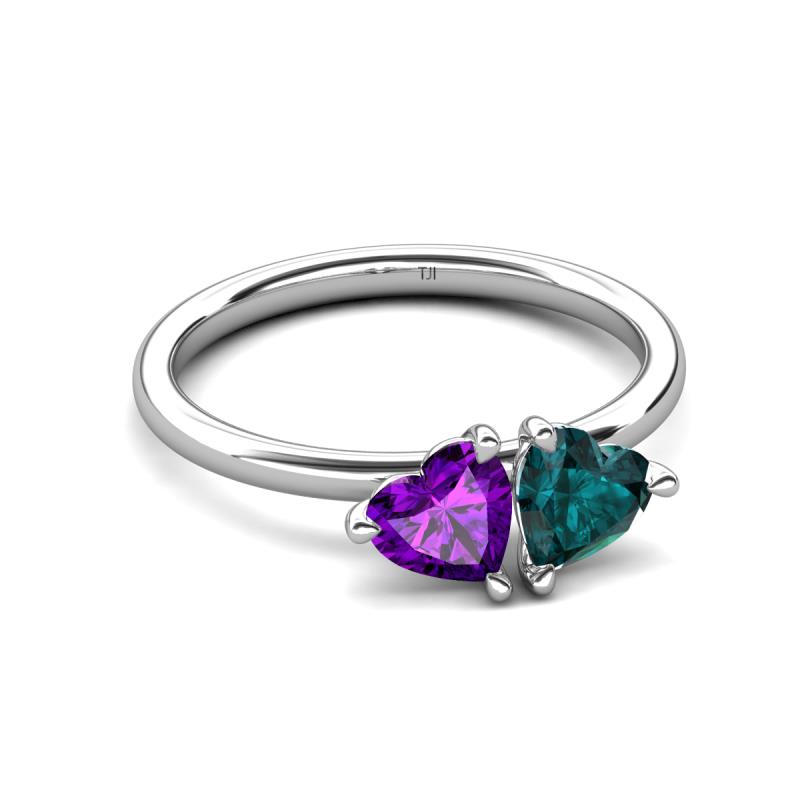 1.68 ctw Heart Shape (6.00 mm) Amethyst & London Blue Topaz with Tiger Claw Prong setting Two Stone Duo Women Engagement Ring in Sterling Silver More Details ...