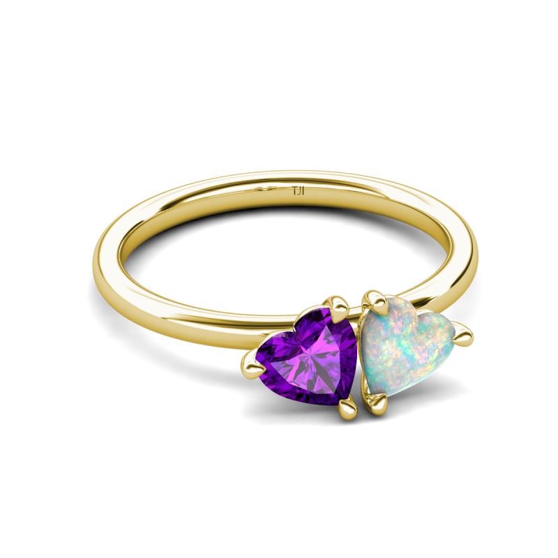 1.13 ctw Heart Shape (6.00 mm) Amethyst & Opal with Tiger Claw Prong setting Two Stone Duo Women Engagement Ring in 10K Yellow Gold More Details ...