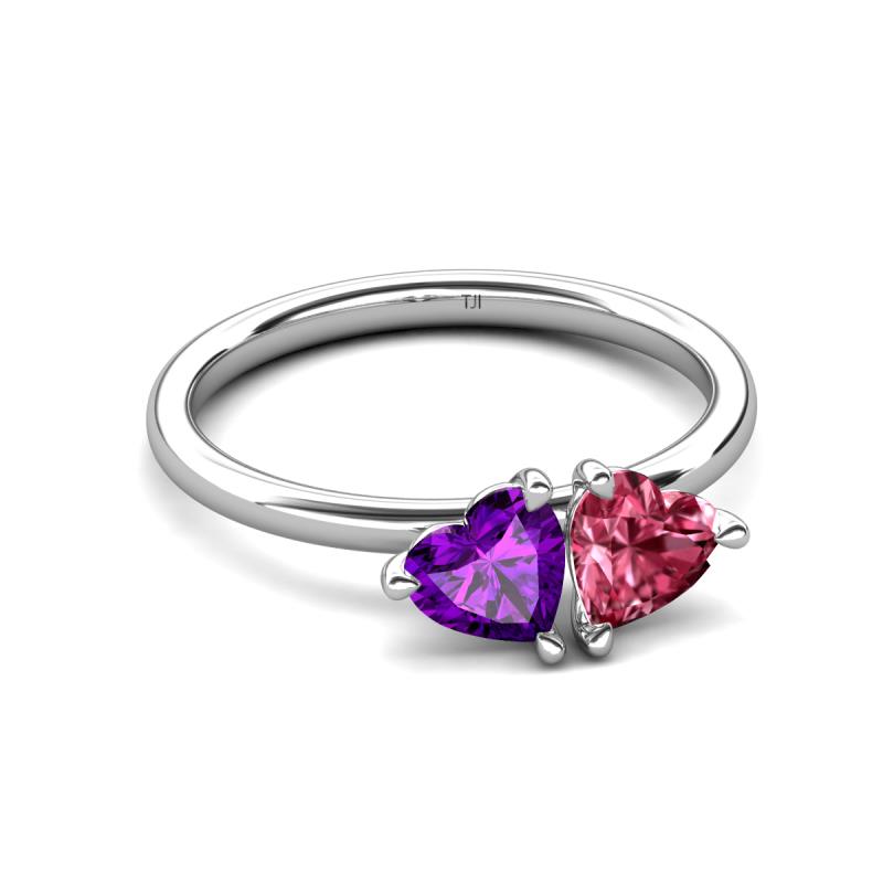 1.48 ctw Heart Shape (6.00 mm) Amethyst & Pink Tourmaline with Tiger Claw Prong setting Two Stone Duo Women Engagement Ring in 14K White Gold More Details ...
