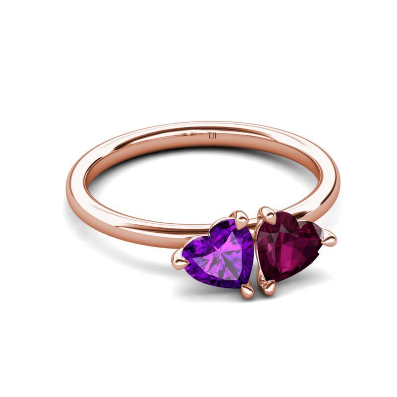 1.78 ctw Heart Shape (6.00 mm) Amethyst & Rhodolite Garnet with Tiger Claw Prong setting Two Stone Duo Women Engagement Ring in 10K Rose Gold More Details ...