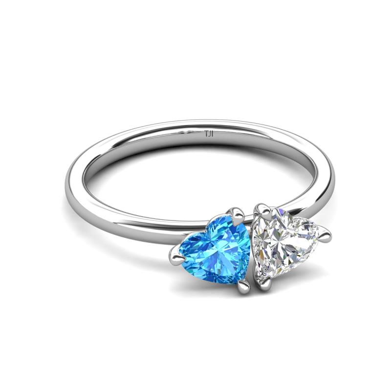 1.85 ctw Heart Shape (6.00 mm) Blue Topaz & IGI Certified Lab Grown Diamond with Tiger Claw Prong setting Two Stone Duo Women Engagement Ring in 14K White Gold More Details ...