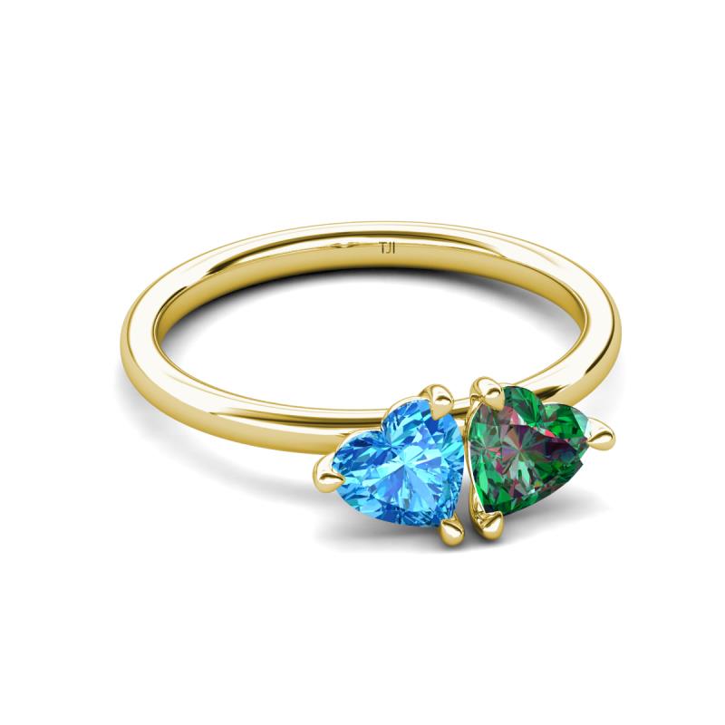 1.75 ctw Heart Shape (6.00 mm) Blue Topaz & Lab Created Alexandrite with Tiger Claw Prong setting Two Stone Duo Women Engagement Ring in 10K Yellow Gold More Details ...