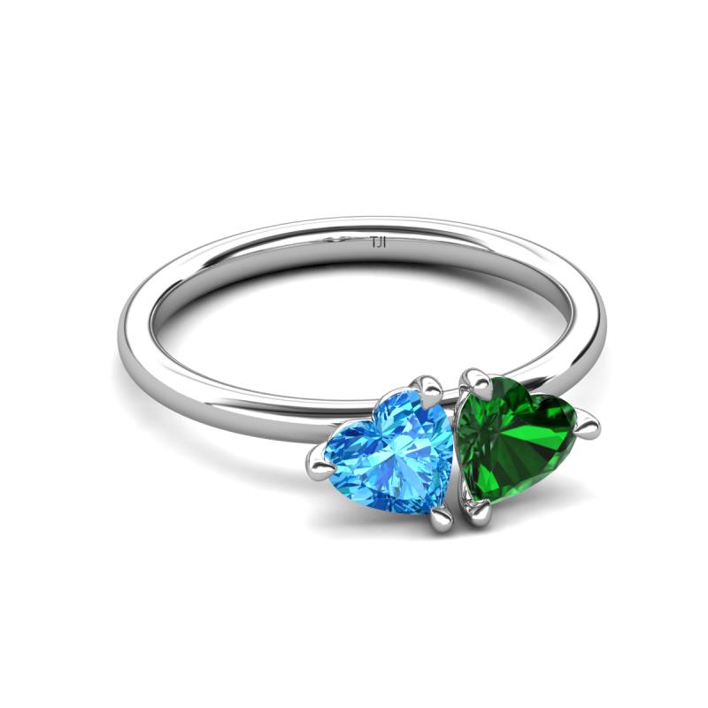 1.75 ctw Heart Shape (6.00 mm) Blue Topaz & Lab Created Emerald with Tiger Claw Prong setting Two Stone Duo Women Engagement Ring in Platinum More Details ...