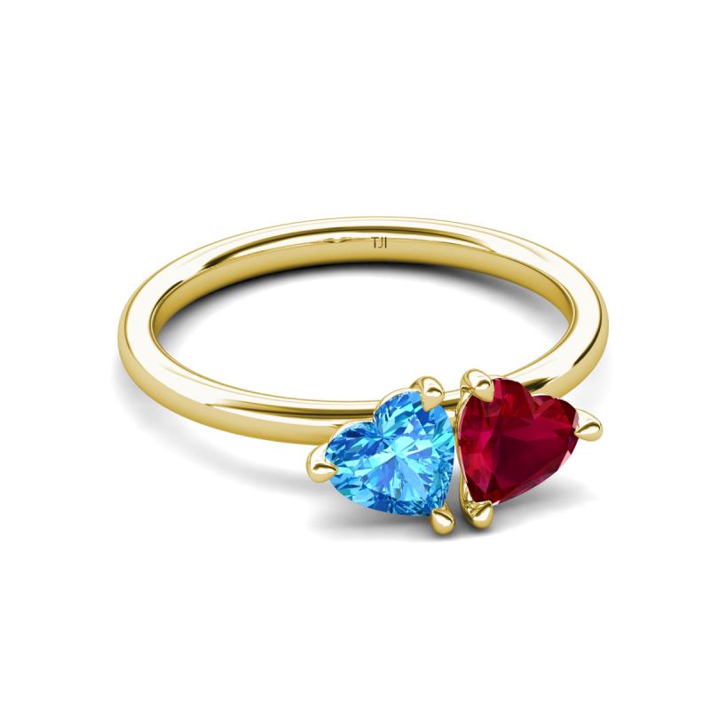 1.80 ctw Heart Shape (6.00 mm) Blue Topaz & Lab Created Ruby with Tiger Claw Prong setting Two Stone Duo Women Engagement Ring in 14K Yellow Gold More Details ...