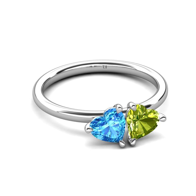 1.95 ctw Heart Shape (6.00 mm) Blue Topaz & Peridot with Tiger Claw Prong setting Two Stone Duo Women Engagement Ring in 14K White Gold More Details ...