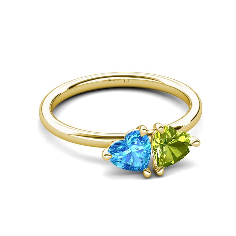 1.95 ctw Heart Shape (6.00 mm) Blue Topaz & Peridot with Tiger Claw Prong setting Two Stone Duo Women Engagement Ring in 18K Yellow Gold More Details ...