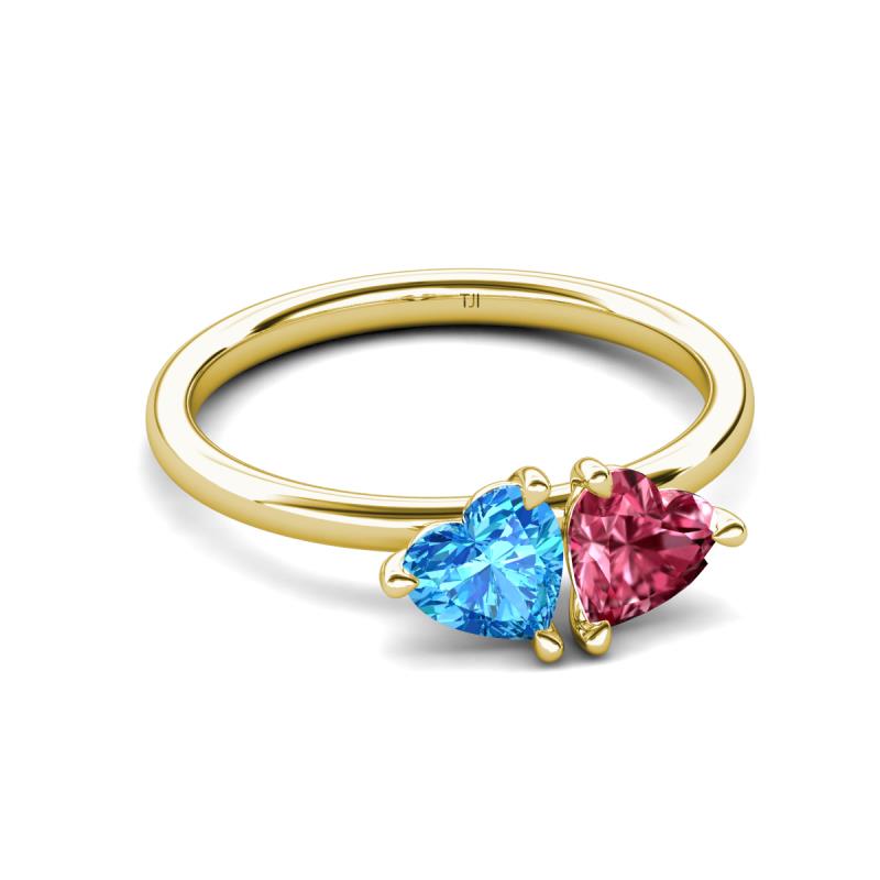 1.80 ctw Heart Shape (6.00 mm) Blue Topaz & Pink Tourmaline with Tiger Claw Prong setting Two Stone Duo Women Engagement Ring in 10K Yellow Gold More Details ...