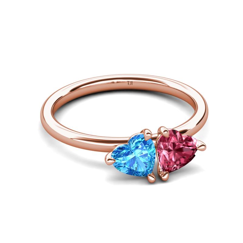 1.80 ctw Heart Shape (6.00 mm) Blue Topaz & Pink Tourmaline with Tiger Claw Prong setting Two Stone Duo Women Engagement Ring in 14K Rose Gold More Details ...