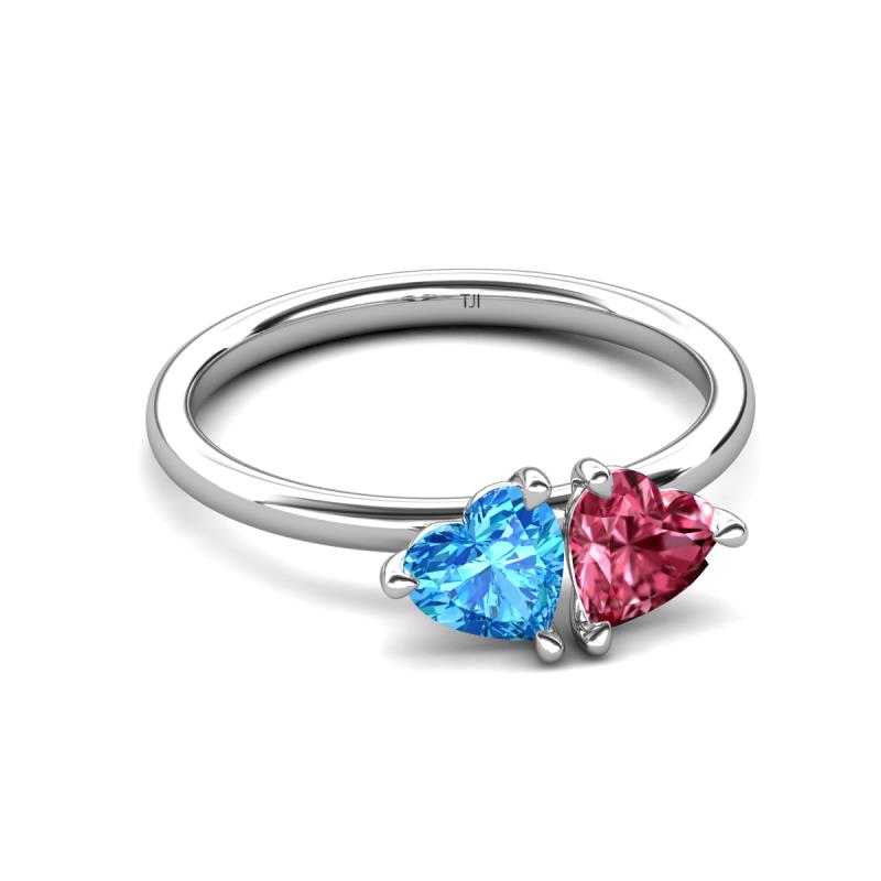 1.80 ctw Heart Shape (6.00 mm) Blue Topaz & Pink Tourmaline with Tiger Claw Prong setting Two Stone Duo Women Engagement Ring in Sterling Silver More Details ...