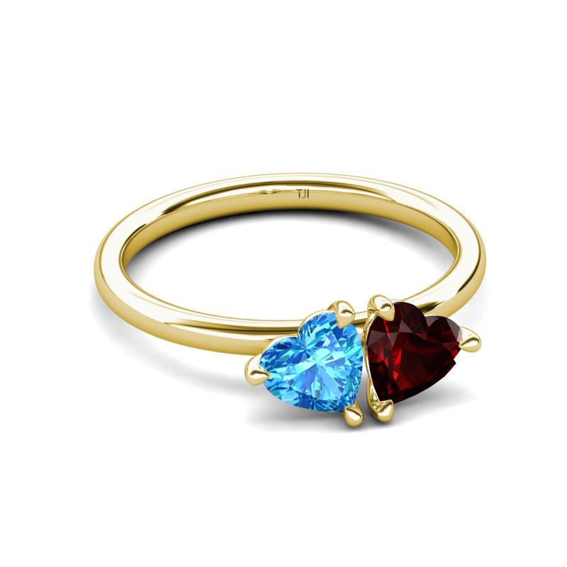 1.95 ctw Heart Shape (6.00 mm) Blue Topaz & Red Garnet with Tiger Claw Prong setting Two Stone Duo Women Engagement Ring in 14K Yellow Gold More Details ...
