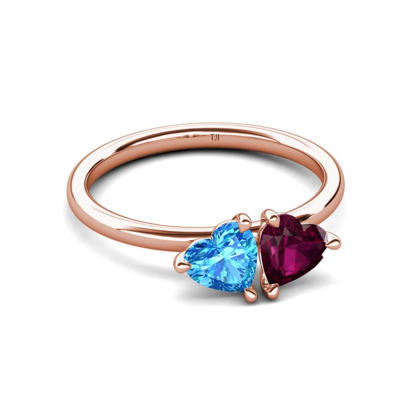 2.10 ctw Heart Shape (6.00 mm) Blue Topaz & Rhodolite Garnet with Tiger Claw Prong setting Two Stone Duo Women Engagement Ring in 18K Rose Gold More Details ...