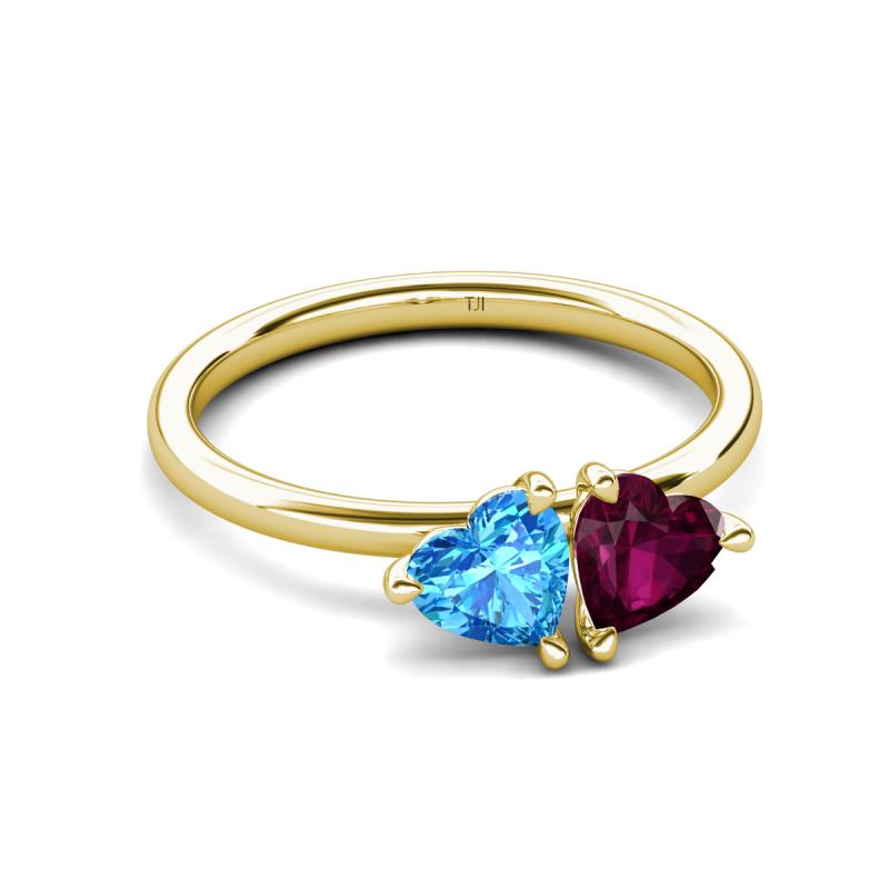 2.10 ctw Heart Shape (6.00 mm) Blue Topaz & Rhodolite Garnet with Tiger Claw Prong setting Two Stone Duo Women Engagement Ring in 18K Yellow Gold More Details ...