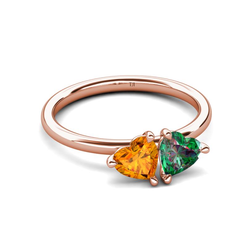 1.43 ctw Heart Shape (6.00 mm) Citrine & Lab Created Alexandrite with Tiger Claw Prong setting Two Stone Duo Women Engagement Ring in 14K Rose Gold More Details ...