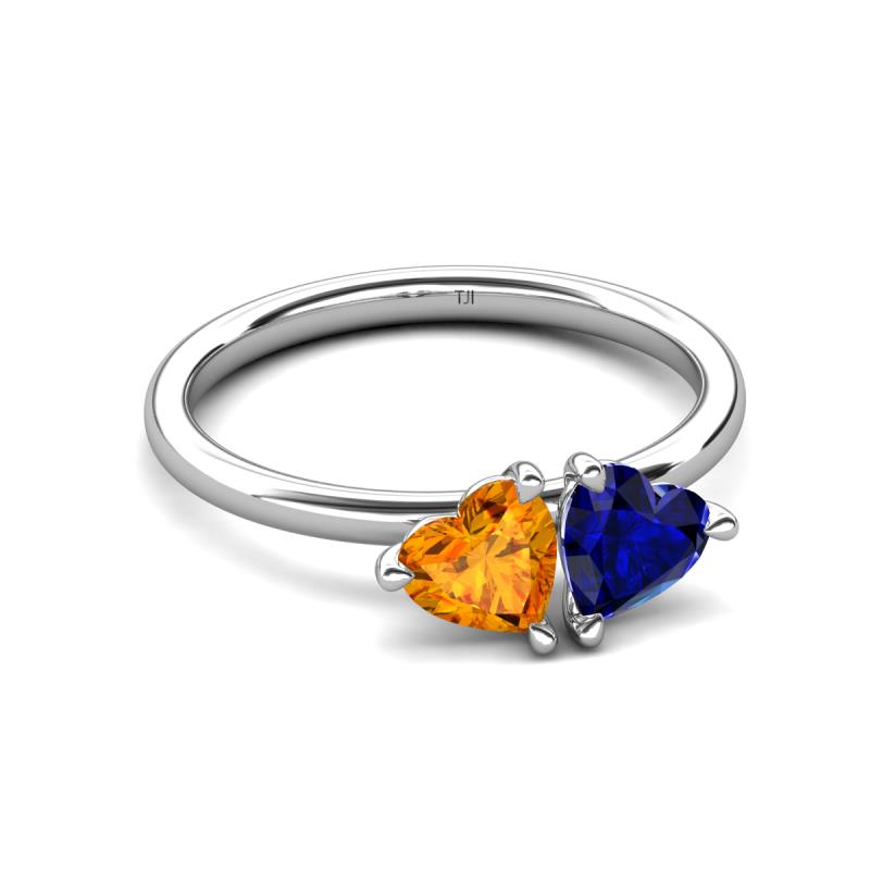 1.58 ctw Heart Shape (6.00 mm) Citrine & Lab Created Blue Sapphire with Tiger Claw Prong setting Two Stone Duo Women Engagement Ring in 10K White Gold More Details ...