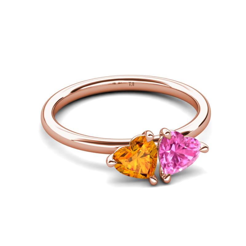 1.58 ctw Heart Shape (6.00 mm) Citrine & Lab Created Pink Sapphire with Tiger Claw Prong setting Two Stone Duo Women Engagement Ring in 18K Rose Gold More Details ...