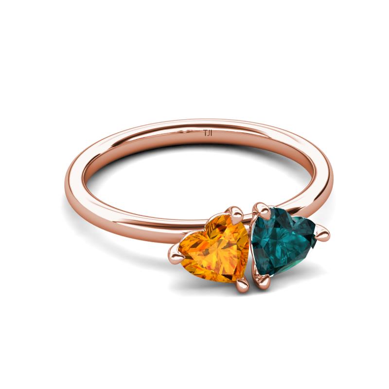 1.68 ctw Heart Shape (6.00 mm) Citrine & London Blue Topaz with Tiger Claw Prong setting Two Stone Duo Women Engagement Ring in 18K Rose Gold More Details ...