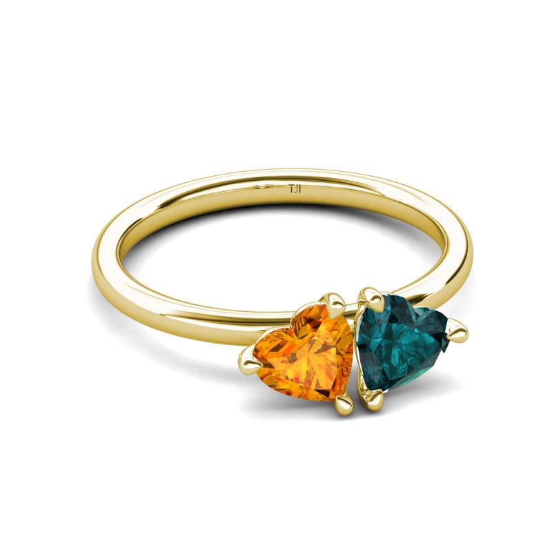 1.68 ctw Heart Shape (6.00 mm) Citrine & London Blue Topaz with Tiger Claw Prong setting Two Stone Duo Women Engagement Ring in 18K Yellow Gold More Details ...
