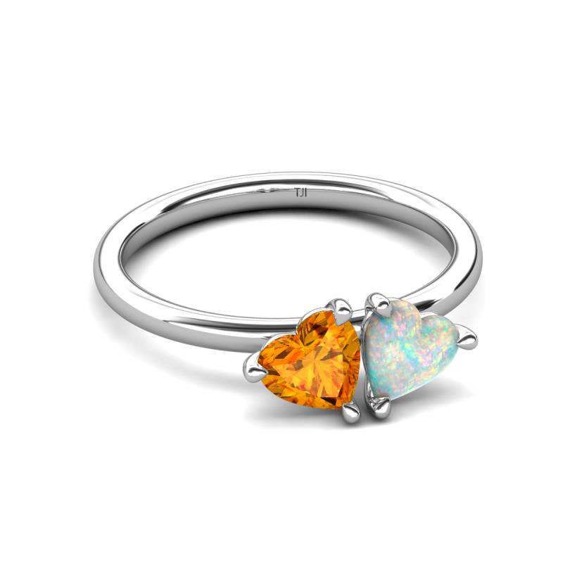 1.13 ctw Heart Shape (6.00 mm) Citrine & Opal with Tiger Claw Prong setting Two Stone Duo Women Engagement Ring in 14K White Gold More Details ...