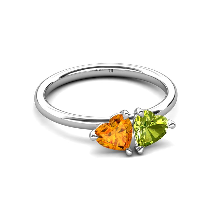 1.63 ctw Heart Shape (6.00 mm) Citrine & Peridot with Tiger Claw Prong setting Two Stone Duo Women Engagement Ring in 14K White Gold More Details ...