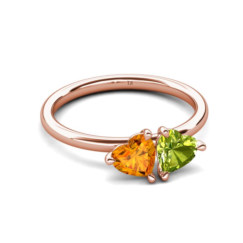 1.63 ctw Heart Shape (6.00 mm) Citrine & Peridot with Tiger Claw Prong setting Two Stone Duo Women Engagement Ring in 18K Rose Gold More Details ...