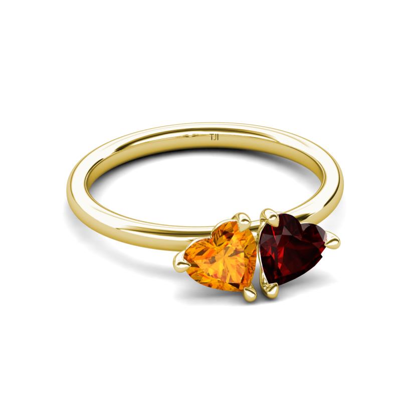 1.63 ctw Heart Shape (6.00 mm) Citrine & Red Garnet with Tiger Claw Prong setting Two Stone Duo Women Engagement Ring in 10K Yellow Gold More Details ...