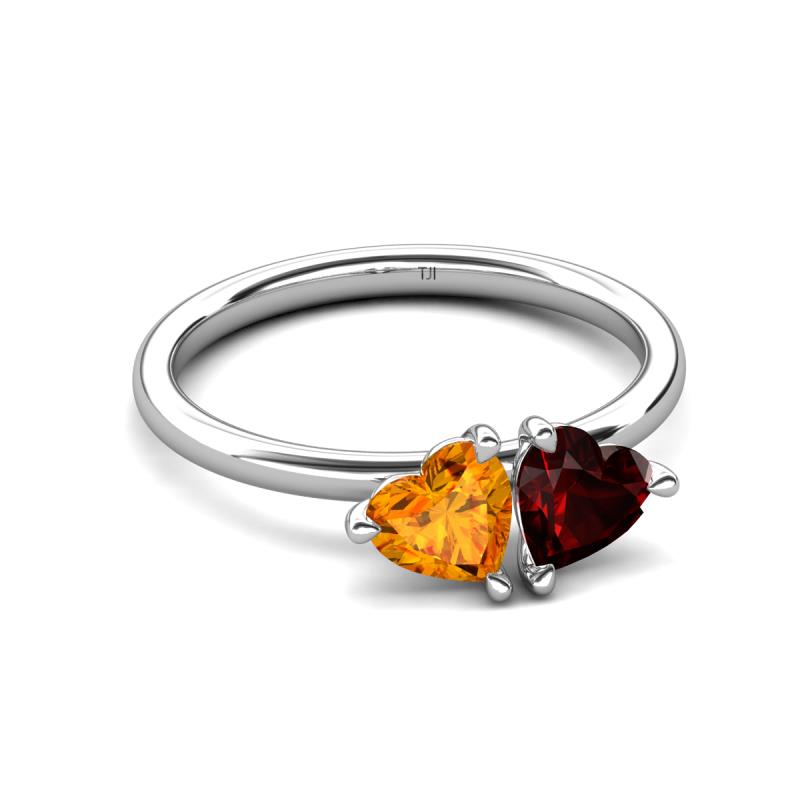 1.63 ctw Heart Shape (6.00 mm) Citrine & Red Garnet with Tiger Claw Prong setting Two Stone Duo Women Engagement Ring in 14K White Gold More Details ...