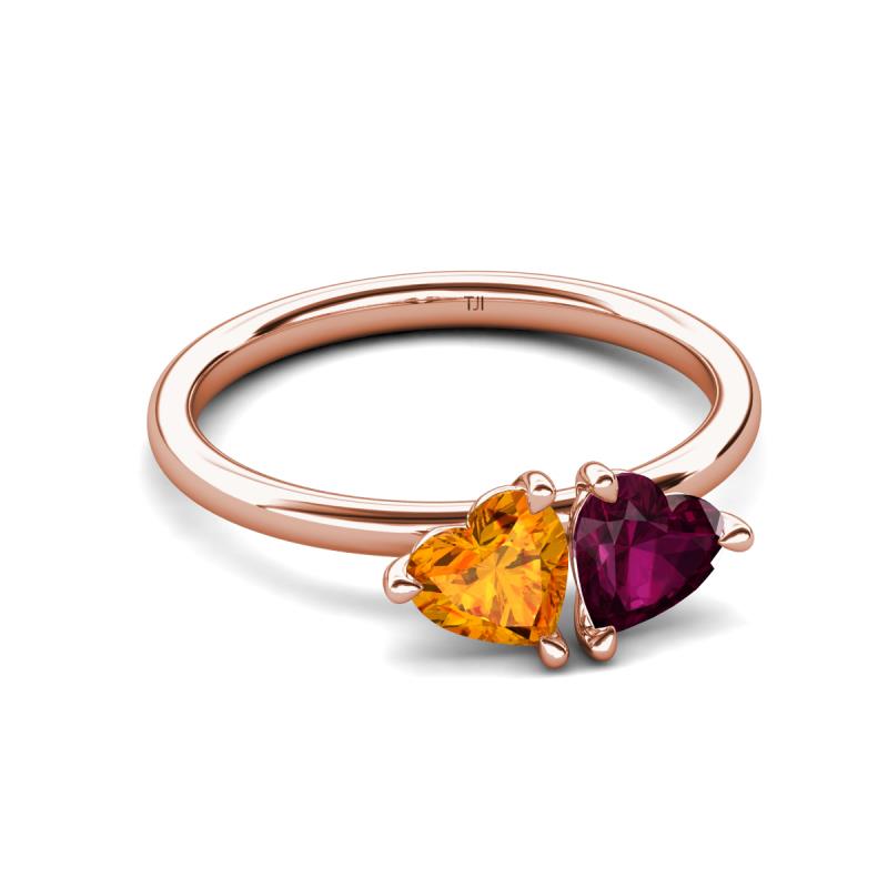 1.78 ctw Heart Shape (6.00 mm) Citrine & Rhodolite Garnet with Tiger Claw Prong setting Two Stone Duo Women Engagement Ring in 18K Rose Gold More Details ...