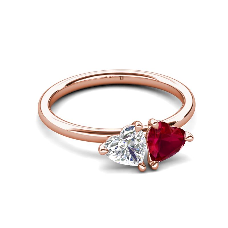 1.65 ctw Heart Shape (6.00 mm) IGI Certified Lab Grown Diamond & Lab Created Ruby with Tiger Claw Prong setting Two Stone Duo Women Engagement Ring in 14K Rose Gold More Details ...