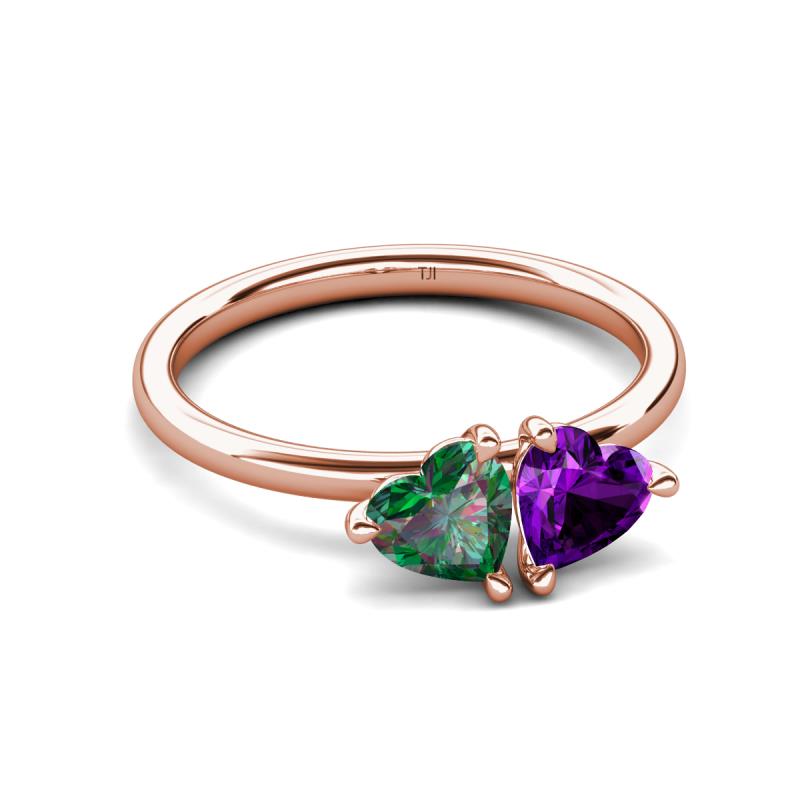 1.43 ctw Heart Shape (6.00 mm) Lab Created Alexandrite & Amethyst with Tiger Claw Prong setting Two Stone Duo Women Engagement Ring in 14K Rose Gold More Details ...
