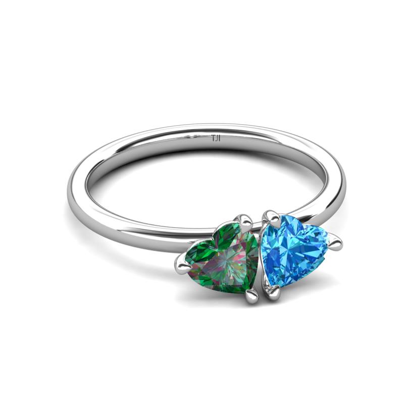 1.75 ctw Heart Shape (6.00 mm) Lab Created Alexandrite & Blue Topaz with Tiger Claw Prong setting Two Stone Duo Women Engagement Ring in 10K White Gold More Details ...