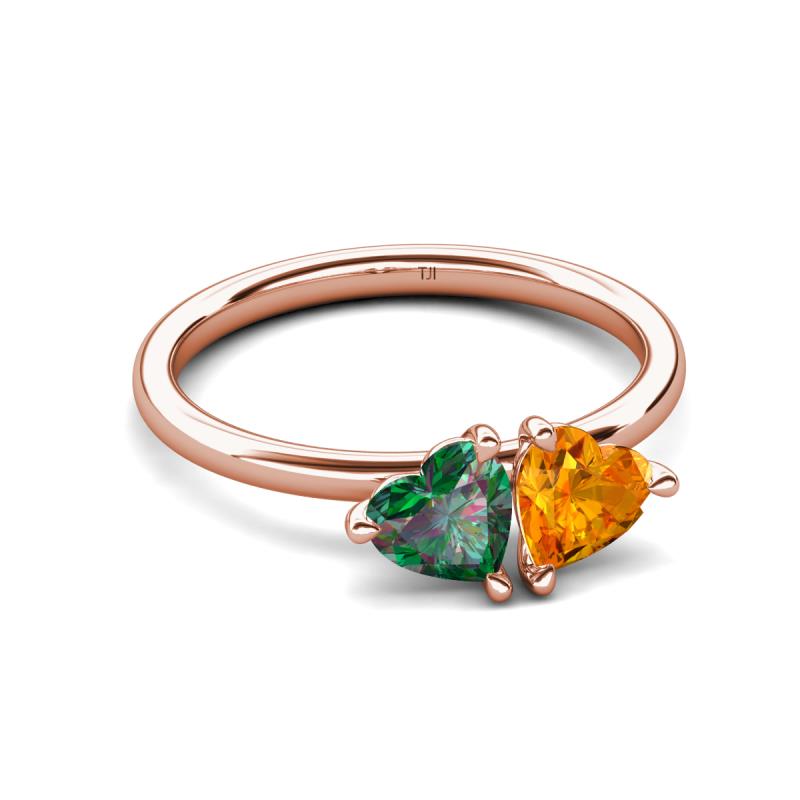 1.43 ctw Heart Shape (6.00 mm) Lab Created Alexandrite & Citrine with Tiger Claw Prong setting Two Stone Duo Women Engagement Ring in 10K Rose Gold More Details ...