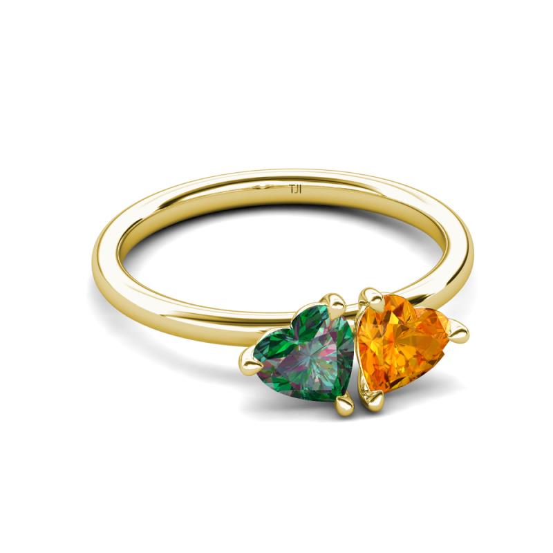 1.43 ctw Heart Shape (6.00 mm) Lab Created Alexandrite & Citrine with Tiger Claw Prong setting Two Stone Duo Women Engagement Ring in 10K Yellow Gold More Details ...