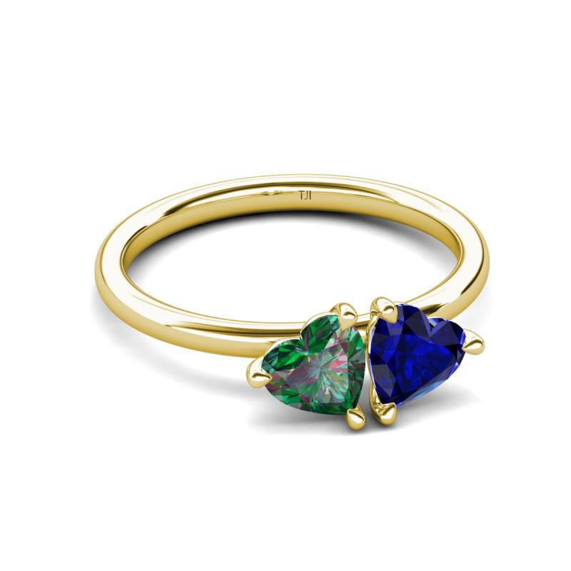 1.65 ctw Heart Shape (6.00 mm) Lab Created Alexandrite & Lab Created Blue Sapphire with Tiger Claw Prong setting Two Stone Duo Women Engagement Ring in 10K Yellow Gold More Details ...