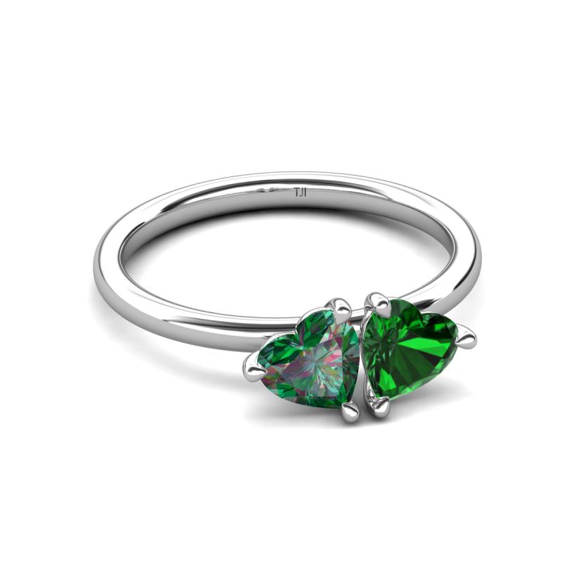1.50 ctw Heart Shape (6.00 mm) Lab Created Alexandrite & Lab Created Emerald with Tiger Claw Prong setting Two Stone Duo Women Engagement Ring in 14K White Gold More Details ...