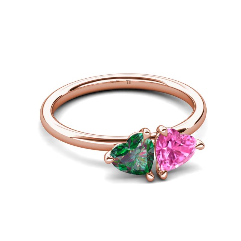 1.65 ctw Heart Shape (6.00 mm) Lab Created Alexandrite & Lab Created Pink Sapphire with Tiger Claw Prong setting Two Stone Duo Women Engagement Ring in 14K Rose Gold More Details ...