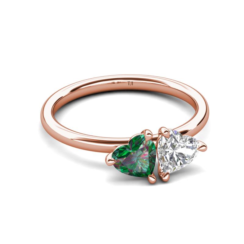 1.65 ctw Heart Shape (6.00 mm) Lab Created Alexandrite & Lab Created White Sapphire with Tiger Claw Prong setting Two Stone Duo Women Engagement Ring in 14K Rose Gold More Details ...