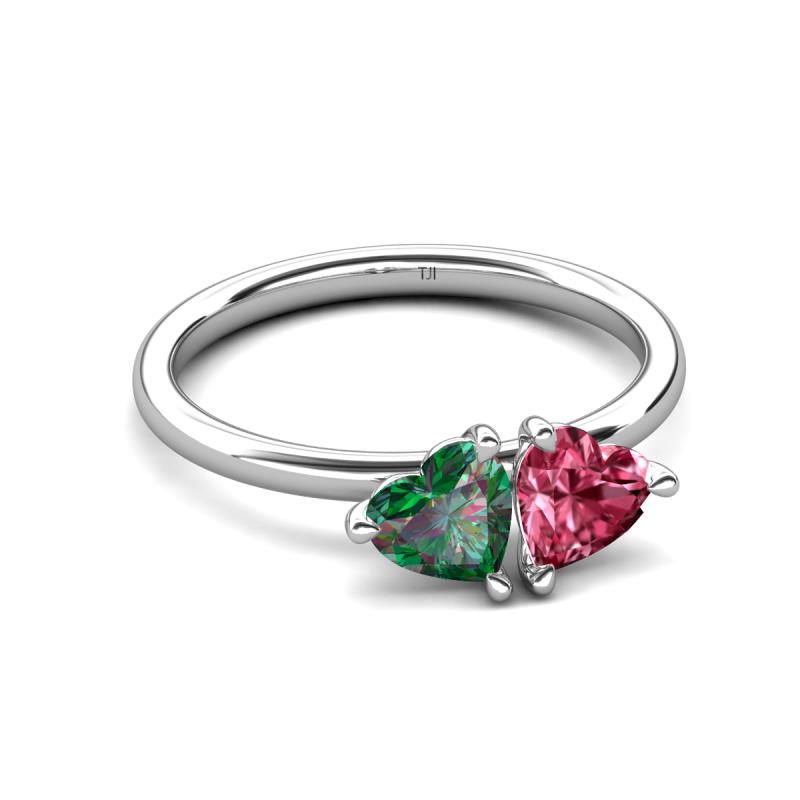 1.55 ctw Heart Shape (6.00 mm) Lab Created Alexandrite & Pink Tourmaline with Tiger Claw Prong setting Two Stone Duo Women Engagement Ring in 10K White Gold More Details ...