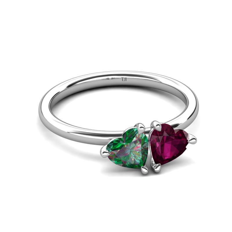 1.85 ctw Heart Shape (6.00 mm) Lab Created Alexandrite & Rhodolite Garnet with Tiger Claw Prong setting Two Stone Duo Women Engagement Ring in 14K White Gold More Details ...
