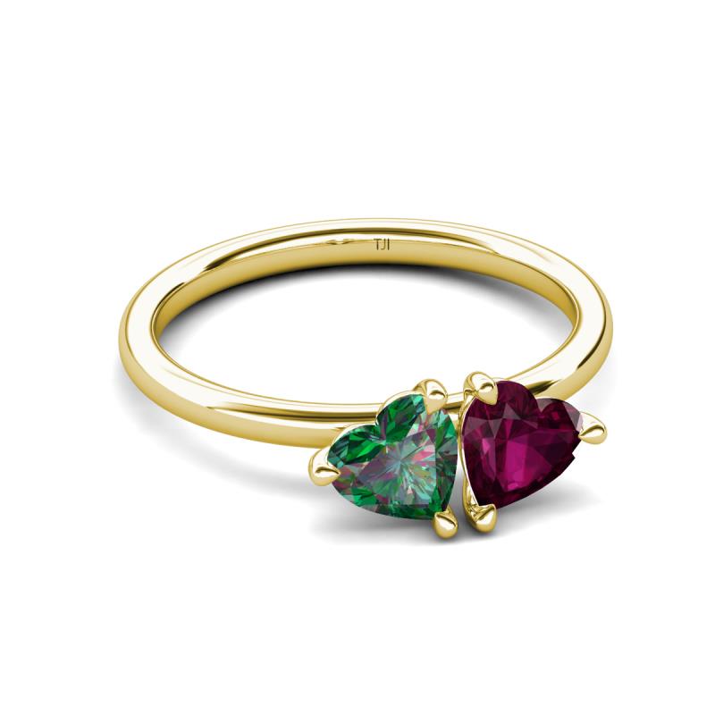 1.85 ctw Heart Shape (6.00 mm) Lab Created Alexandrite & Rhodolite Garnet with Tiger Claw Prong setting Two Stone Duo Women Engagement Ring in 14K Yellow Gold More Details ...