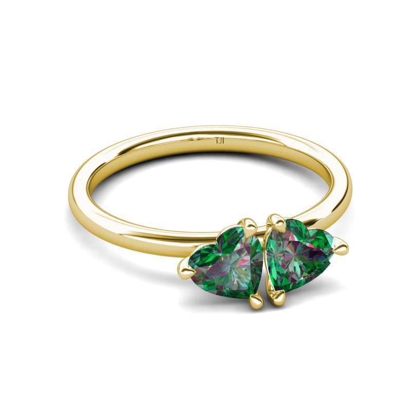 1.50 ctw Heart Shape (6.00 mm) Lab Created Alexandrite with Tiger Claw Prong setting Two Stone Duo Women Engagement Ring in 10K Yellow Gold More Details ...