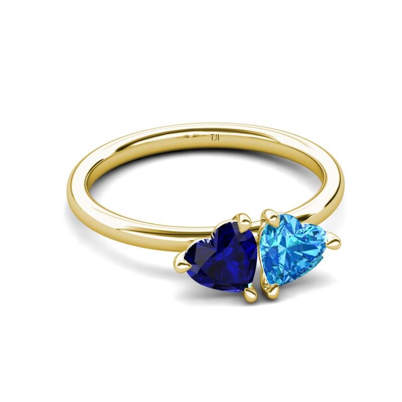 1.90 ctw Heart Shape (6.00 mm) Lab Created Blue Sapphire & Blue Topaz with Tiger Claw Prong setting Two Stone Duo Women Engagement Ring in 10K Yellow Gold More Details ...