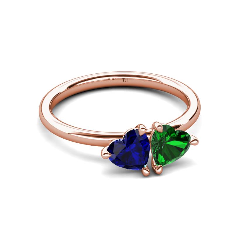 1.65 ctw Heart Shape (6.00 mm) Lab Created Blue Sapphire & Lab Created Emerald with Tiger Claw Prong setting Two Stone Duo Women Engagement Ring in 18K Rose Gold More Details ...