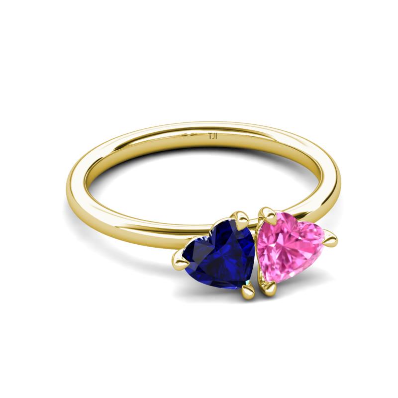 1.80 ctw Heart Shape (6.00 mm) Lab Created Blue Sapphire & Lab Created Pink Sapphire with Tiger Claw Prong setting Two Stone Duo Women Engagement Ring in 18K Yellow Gold More Details ...