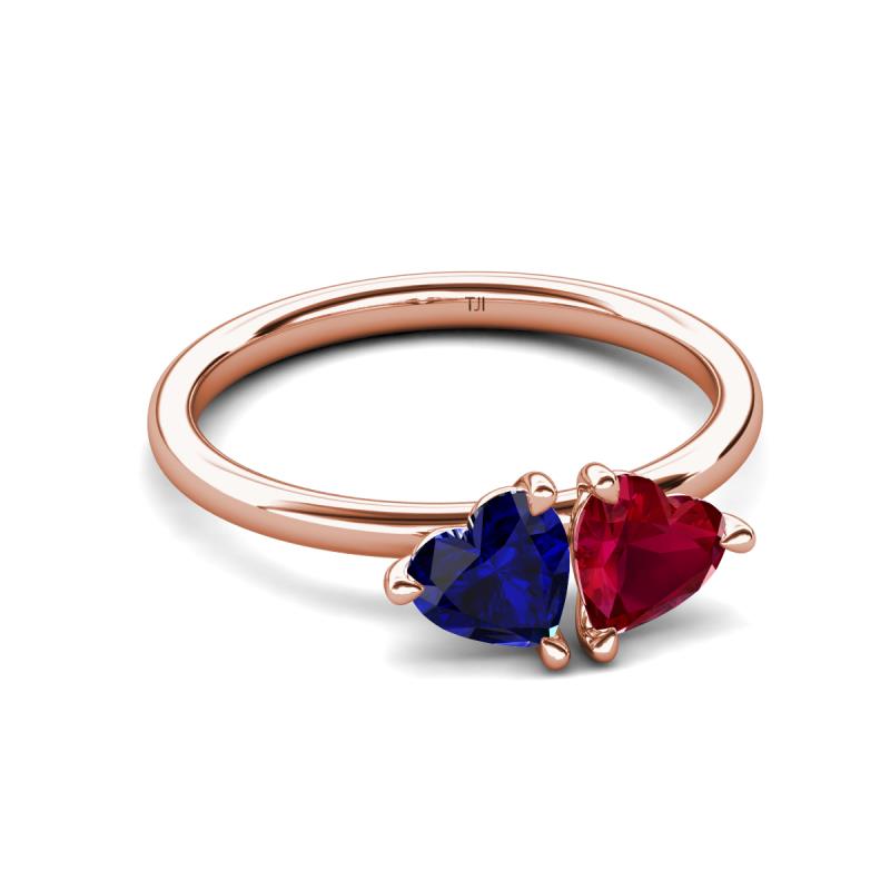 1.70 ctw Heart Shape (6.00 mm) Lab Created Blue Sapphire & Lab Created Ruby with Tiger Claw Prong setting Two Stone Duo Women Engagement Ring in 10K Rose Gold More Details ...