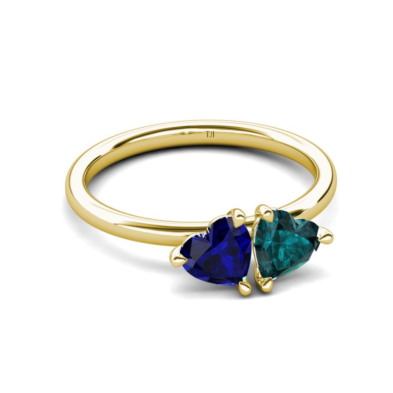 1.90 ctw Heart Shape (6.00 mm) Lab Created Blue Sapphire & London Blue Topaz with Tiger Claw Prong setting Two Stone Duo Women Engagement Ring in 10K Yellow Gold More Details ...