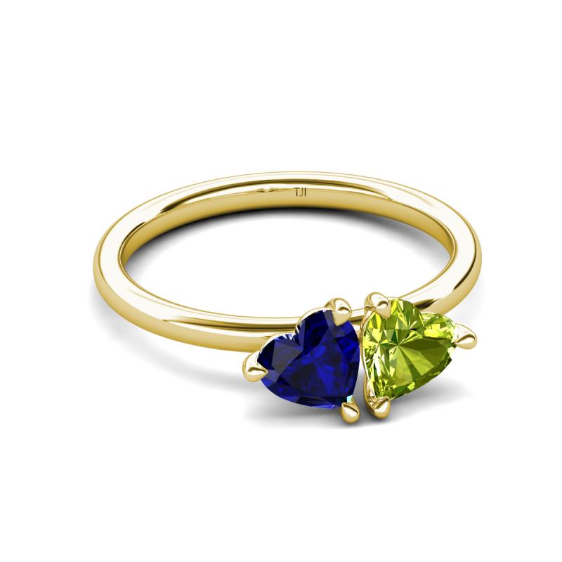 1.85 ctw Heart Shape (6.00 mm) Lab Created Blue Sapphire & Peridot with Tiger Claw Prong setting Two Stone Duo Women Engagement Ring in 10K Yellow Gold More Details ...