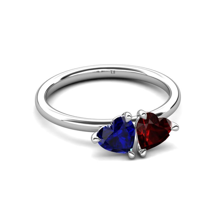 1.85 ctw Heart Shape (6.00 mm) Lab Created Blue Sapphire & Red Garnet with Tiger Claw Prong setting Two Stone Duo Women Engagement Ring in 10K White Gold More Details ...