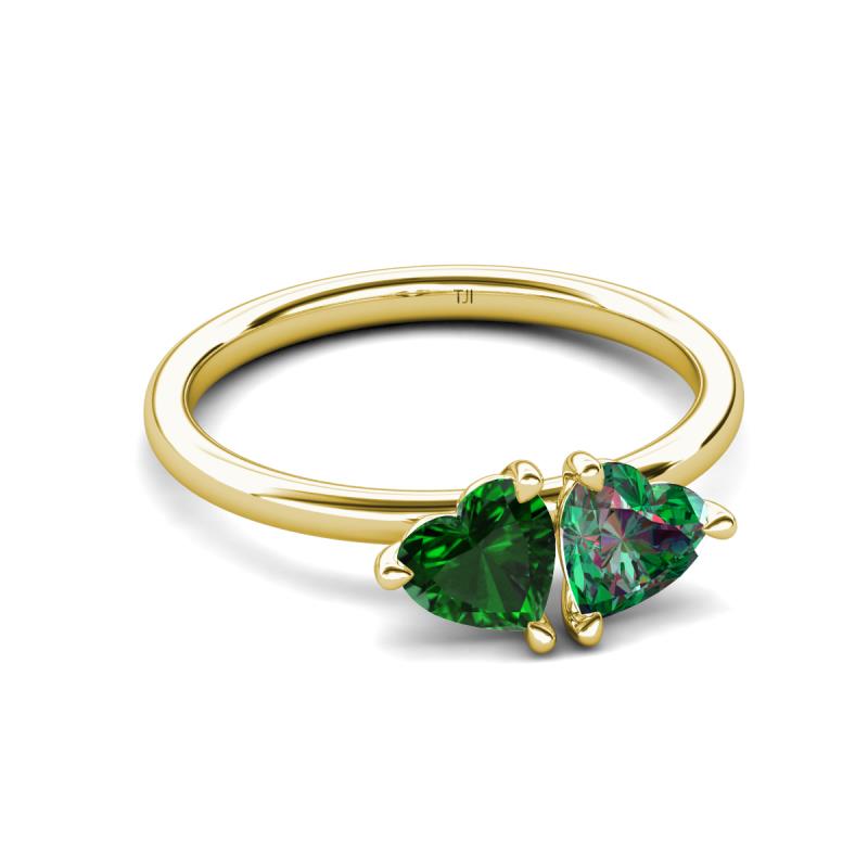 1.50 ctw Heart Shape (6.00 mm) Lab Created Emerald & Lab Created Alexandrite with Tiger Claw Prong setting Two Stone Duo Women Engagement Ring in 10K Yellow Gold More Details ...