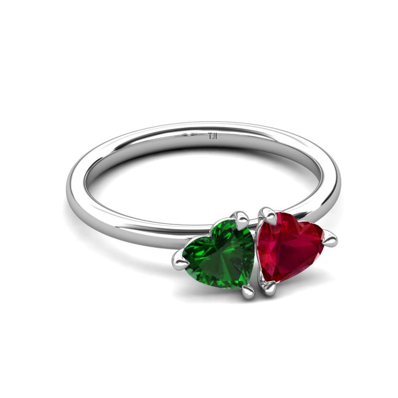 1.55 ctw Heart Shape (6.00 mm) Lab Created Emerald & Lab Created Ruby with Tiger Claw Prong setting Two Stone Duo Women Engagement Ring in 18K White Gold More Details ...