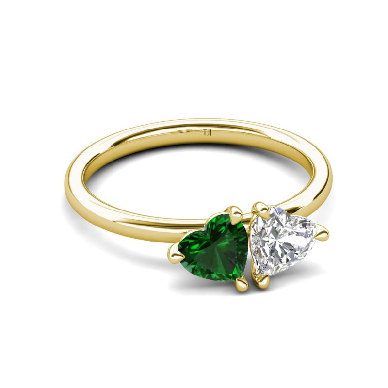 1.65 ctw Heart Shape (6.00 mm) Lab Created Emerald & Lab Created White Sapphire with Tiger Claw Prong setting Two Stone Duo Women Engagement Ring in 10K Yellow Gold More Details ...